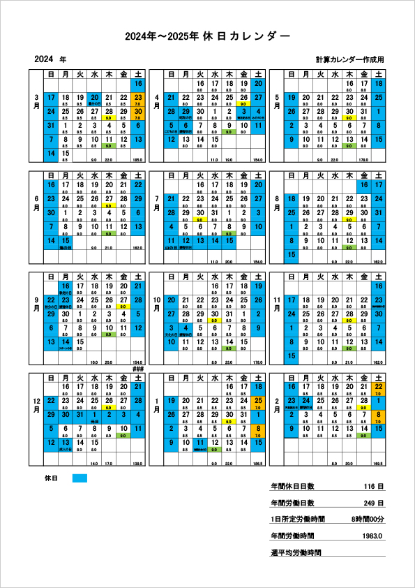 社会保険労務士法人北見事務所のカレンダーをココに載せます。120日の休日があり、秋には4連休(土日祝+火もしくは金)がありますので、秋には旅行に行く職員が大勢います。