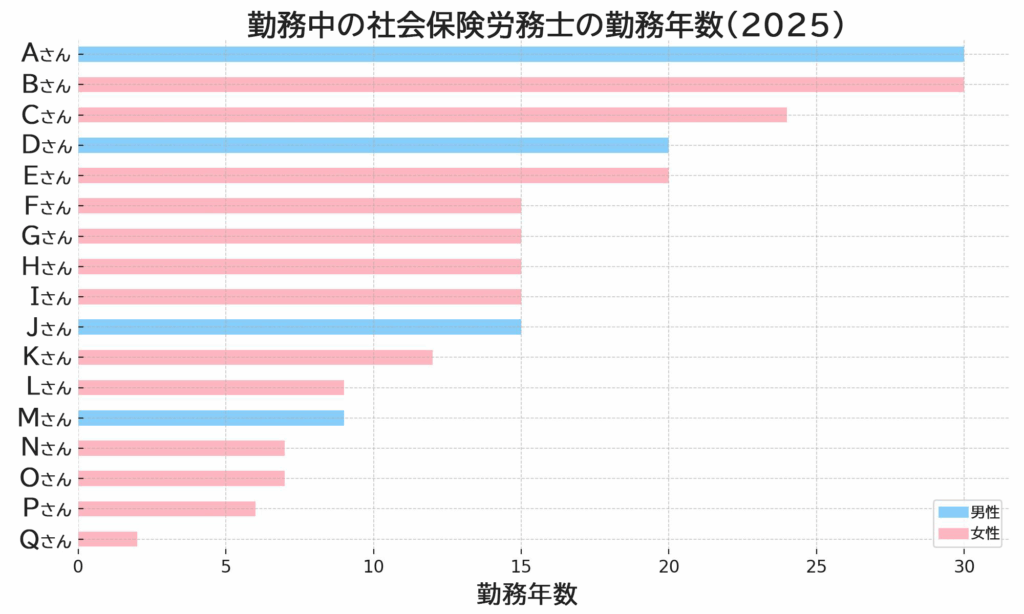 北見事務所で勤務する社会保険労務士の勤務年数は?