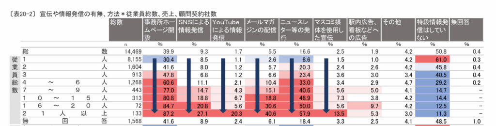 20人以上の社労士事務所は、ホームページ、SNS、ユーチューブ、メールマガジン、ニュースレター等を駆使している。